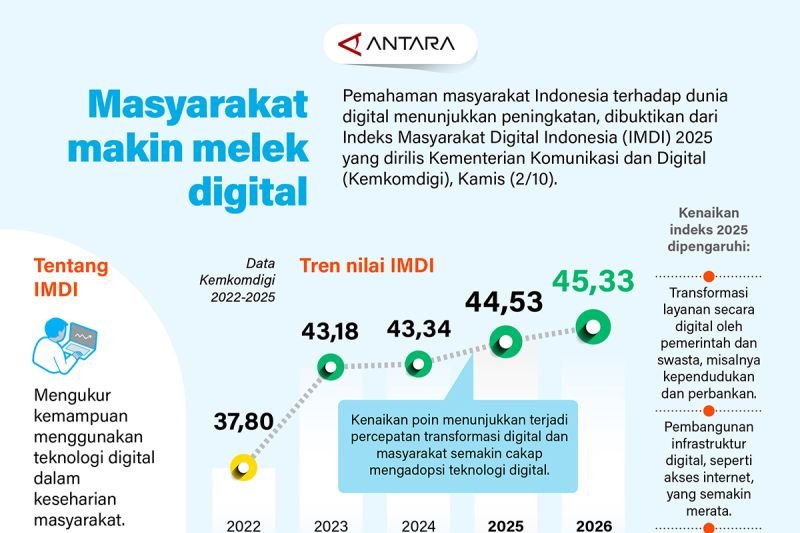 Berita Terkini Masyarakat makin melek digital admin 3 hours ago Pemahaman masyarakat Indonesia terhadap dunia digital menunjukkan peningkatan, dibuktikan dari Indeks Masyarakat ….Sumber : Berita Terkini – ANTARA NewsContinue ReadingPrevious: Alam dan warisan budaya jadi kekuatan hadirkan pariwisata berkualitasNext: Cermati Fintech bahas cara kelola tabungan masa depanLeave a Reply Cancel replyYour email address will not be published. Required fields are marked *Comment *Name * Email * Website Save my name, email, and website in this browser for the next time I comment. Related Stories Atalia Praratya meriahkan HUT ke-61 Golkar dengan warga Kiaracondong Berita Terkini Atalia Praratya meriahkan HUT ke-61 Golkar dengan warga Kiaracondong admin 3 minutes ago Next Indonesia nilai perlu perluasan jargas untuk tekan subsidi LPG Berita Terkini Next Indonesia nilai perlu perluasan jargas untuk tekan subsidi LPG admin 1 hour ago Cermati Fintech bahas cara kelola tabungan masa depan Berita Terkini Cermati Fintech bahas cara kelola tabungan masa depan admin 2 hours ago Alam dan warisan budaya jadi kekuatan hadirkan pariwisata berkualitas Berita Terkini Alam dan warisan budaya jadi kekuatan hadirkan pariwisata berkualitas admin 4 hours ago Pemkab Lumajang bentuk kluster cabai jaga pasokan-stabilkan harga Berita Terkini Pemkab Lumajang bentuk kluster cabai jaga pasokan-stabilkan harga admin 5 hours ago SIM Keliling hanya tersedia di dua lokasi Berita Terkini SIM Keliling hanya tersedia di dua lokasi admin 6 hours ago