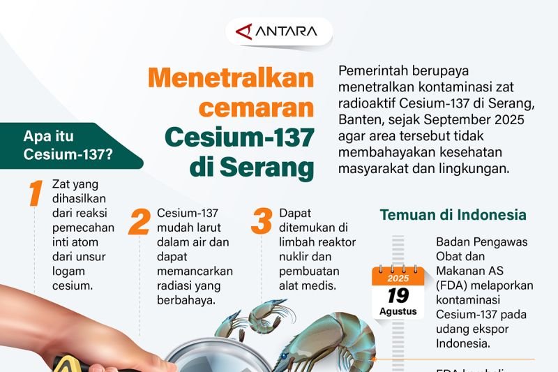 Berita Terkini Menetralkan cemaran Cesium-137 di Serang admin 2 days ago Pemerintah berupaya menetralkan kontaminasi zat radioaktif Cesium-137 di Serang, Banten, sejak September 2025 agar area ….Sumber : Berita Terkini – ANTARA NewsContinue ReadingPrevious: Aljazair segel tiket Piala Dunia 2026 seusai hajar Somalia 3-0Next: Layanan SIM Keliling tersedia di lima lokasi Jakarta pada JumatLeave a Reply Cancel replyYour email address will not be published. Required fields are marked *Comment *Name * Email * Website Save my name, email, and website in this browser for the next time I comment. Related Stories Atalia Praratya meriahkan HUT ke-61 Golkar dengan warga Kiaracondong Berita Terkini Atalia Praratya meriahkan HUT ke-61 Golkar dengan warga Kiaracondong admin 24 minutes ago Next Indonesia nilai perlu perluasan jargas untuk tekan subsidi LPG Berita Terkini Next Indonesia nilai perlu perluasan jargas untuk tekan subsidi LPG admin 1 hour ago Cermati Fintech bahas cara kelola tabungan masa depan Berita Terkini Cermati Fintech bahas cara kelola tabungan masa depan admin 2 hours ago Masyarakat makin melek digital Berita Terkini Masyarakat makin melek digital admin 3 hours ago Alam dan warisan budaya jadi kekuatan hadirkan pariwisata berkualitas Berita Terkini Alam dan warisan budaya jadi kekuatan hadirkan pariwisata berkualitas admin 4 hours ago Pemkab Lumajang bentuk kluster cabai jaga pasokan-stabilkan harga Berita Terkini Pemkab Lumajang bentuk kluster cabai jaga pasokan-stabilkan harga admin 5 hours ago