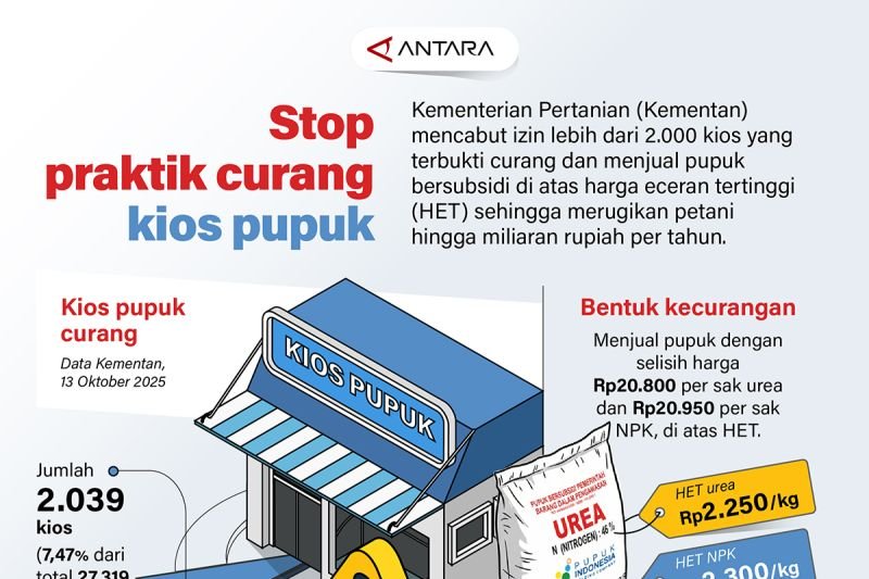 Bisnis Stop praktik curang kios pupuk admin 6 hours ago Kementerian Pertanian (Kementan) mencabut izin lebih dari 2.000 kios yang terbukti curang dan menjual pupuk bersubsidi ….Sumber : Bisnis – ANTARA NewsContinue ReadingPrevious: Menyulap sampah jadi tabungan emas di PegadaianNext: Tiga produk emas di Pegadaian hari ini lanjutkan tren kenaikan hargaLeave a Reply Cancel replyYour email address will not be published. Required fields are marked *Comment *Name * Email * Website Save my name, email, and website in this browser for the next time I comment. Related Stories Bapanas: Harga cabai rawit Rp42.405/kg, bawang merah Rp38.540/kg Bisnis Bapanas: Harga cabai rawit Rp42.405/kg, bawang merah Rp38.540/kg admin 2 hours ago BPJPH-KBRI Beijing perkuat pengawasan halal produk impor China Bisnis BPJPH-KBRI Beijing perkuat pengawasan halal produk impor China admin 3 hours ago Tiga produk emas di Pegadaian hari ini lanjutkan tren kenaikan harga Bisnis Tiga produk emas di Pegadaian hari ini lanjutkan tren kenaikan harga admin 5 hours ago Menyulap sampah jadi tabungan emas di Pegadaian Bisnis Menyulap sampah jadi tabungan emas di Pegadaian admin 10 hours ago Gubernur Jabar prioritaskan pembangunan desa penghasil pajak pada 2026 Bisnis Gubernur Jabar prioritaskan pembangunan desa penghasil pajak pada 2026 admin 12 hours ago Kementerian ESDM-BPS tanda tangani finalisasi data penerima subsidi Bisnis Kementerian ESDM-BPS tanda tangani finalisasi data penerima subsidi admin 13 hours ago
